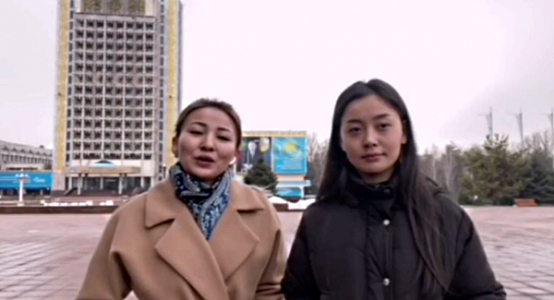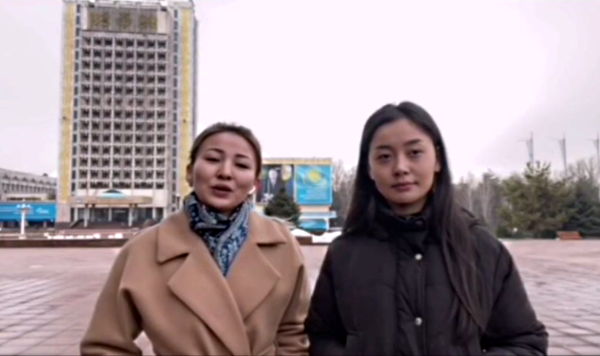 在武汉留学的哈萨克斯坦学生阿莱和迪纳拉,目前暂在阿拉木图隔离,在一则视频中,他们为中国勇敢抗击疫情加油。