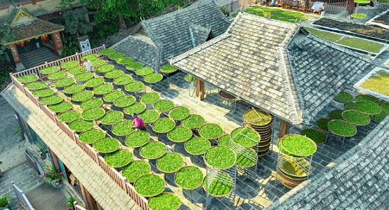 Сушка чая на крышах — это не просто старинный обычай: кровля обеспечивает листу обилие солнечного света, а зазор между подносом и черепицей создает естественную вентиляцию и защищает от почвенной влаги, сохраняя неповторимый горный аромат.