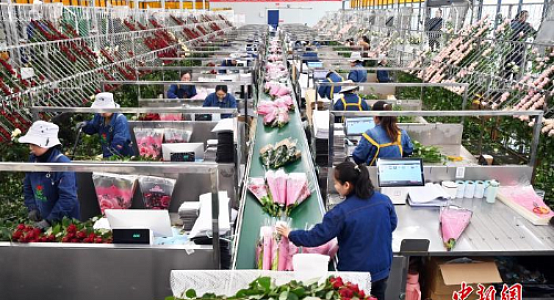 Эта «суперфабрика роз» на Лессовом плато ежегодно производит около 72 млн срезанных роз. Ежедневно более 200 тыс. цветов после сбора, сортировки и упаковки отправляются по всему Китаю, а также экспортируются в Казахстан, Россию, и другие страны.